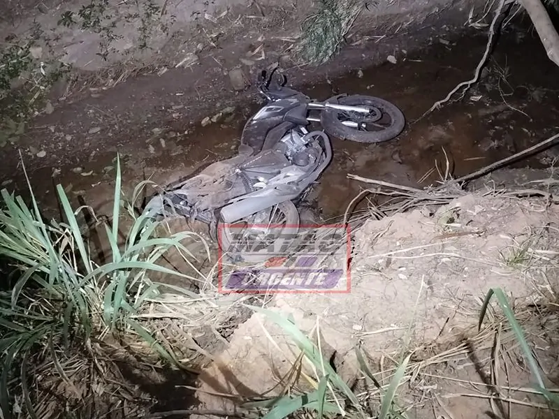 Carro arrasta moto por vários metros e motociclista é lançado em córrego.
