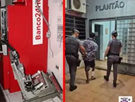 Os autores, Tiago de 43 anos de idade e Vinícius, de 28, estavam tentando retirar o cofre (compartimento onde fica o dinheiro do caixa eletrônico) quando as viaturas chegaram.