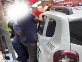 Mas, deu azar, porque do lado de fora dezenas de populares o aguardavam, levando uma surra, mas teve sorte porque a viatura chegou logo.