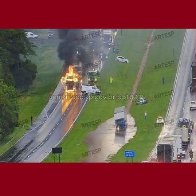 ACIDENTE COM INCÊNDIO INTERDITA A Rodovia Washington Luís EM Araraquara